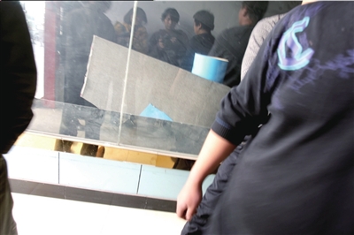 兩名攝影記者被緊緊包圍著。僵持中,六七名便衣男子突然向夏永沖來!白撸 眱擅凶蛹芷鹣挠劳赃厽艟叱峭希有幾人在他背后用力推。孫純霞尖叫,并迅速地按了快門,拍下夏永遭圍攻的一幕。旁邊的群眾開始喊:“打記者了!打記者了!”