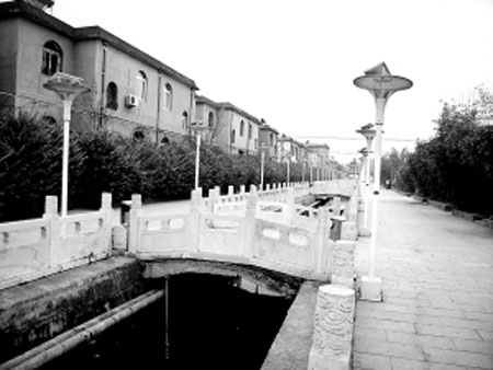 在一片居民區內記者看到,小別墅前建有多道白色的拱橋,橋下水池里喂養著成群的金魚,頗有“金水橋”的意味。當地幾名婦女倚在自家門口,抱著孩子曬太陽。足不出戶,便仿若呆在金水橋畔,看上去十分愜意。