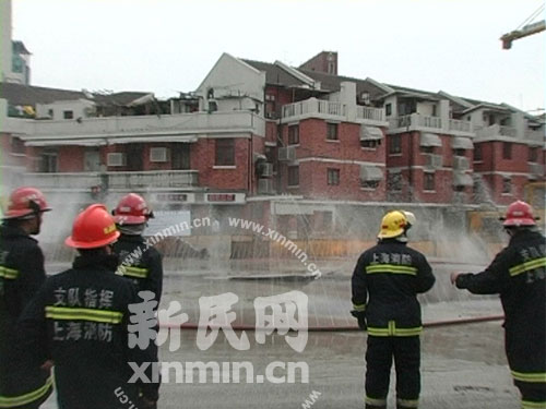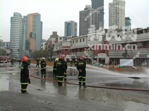 消防人員鋪設了方圓30米的水帶