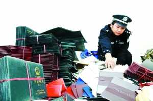 房產(chǎn)證、身份證、車(chē)輛行駛證、名牌大學(xué)畢業(yè)證等幾乎應(yīng)有盡有,百萬(wàn)余件偽造證件成品或半成品將十多平方米的出租房堆得滿(mǎn)滿(mǎn)當(dāng)當(dāng),足足裝了6輛金杯車(chē)。豐臺(tái)警方搗毀一處特大販賣(mài)假證窩點(diǎn),查獲的假證數(shù)量之大實(shí)屬罕見(jiàn)。