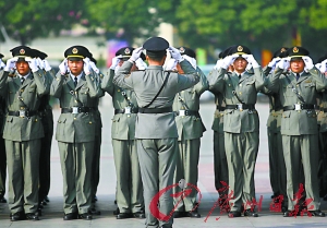“一、二、三、四”,番禺廣場上,一個個城管執法隊員精神抖擻,邁著整齊的步伐從主席臺前通過。昨日上午,番禺城管綜合執法分局19個中隊、600多名城管隊員在番禺廣場舉行“新城管、新形象——隊列匯操”活動。這是廣州城管部門首次舉行大型的“閱兵”儀式。
