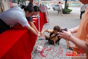 2008年5月12日下午,汶川地震爆發。在廣州華樂街的支援抗震救災募捐活動中,一個用手走路的乞丐,來到現場說“我要捐款”。