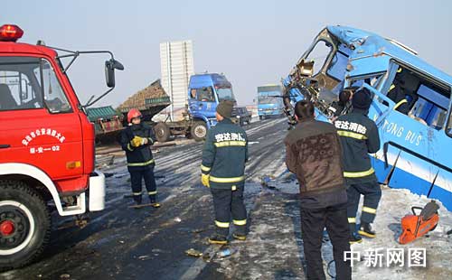 中新網(wǎng)哈爾濱1月4日電 今日12時(shí)40分,在黑龍江省明沈公路與安蘭路交口處(安達(dá)市境內(nèi)),一輛客車與一輛貨車發(fā)生相撞,事故造成2人死亡9人受傷。
