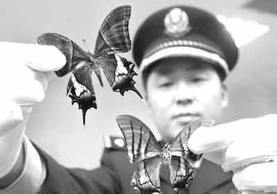 野外生存數量與大熊貓差不多的金斑喙鳳蝶,人們在大自然中幾乎見不到。但讓鄭州海關緝私警察為之一驚的是,他們在查獲的國際航空掛號信里,不僅見到了24枚喙鳳蝶標本,還見到了極為罕見的2枚金裳鳳蝶標本。記者今天從鄭州海關獲悉,他們成功偵破了一起利用郵遞渠道走私珍貴蝴蝶標本出境的案件。