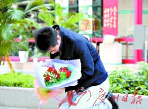 寒風瑟瑟,一年輕男子跪在東莞市南城區體育路口,從早上9時到下午4時,遲遲不肯起身。他的懷中抱著一束紅色的玫瑰花,他不時用右手撐一下地面,讓自己發麻的膝蓋放松一下。