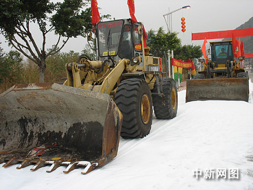 中新網韶關一月二十二日電(馮昶 李凌 譚富堂)一月二十二日上午,廣東韶關乳源體育館門前呈現緊張繁忙的景象,只見積滿冰雪的公路上,一輛輛鏟雪車開道,后面緊跟著撒鹽融冰……,直升飛機在上空盤旋,準備救援傷病人員……
