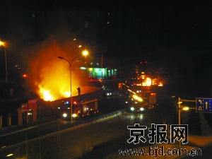 今天凌晨5時許,(北京市)通州區楊莊北方紅旗機電市場路口一煙花爆竹銷售點發生火災,大火將現場所有鞭炮以及攤主的一輛銀白色面包車全部燒毀,燃燒的鞭炮還將30米開外馬路對過的草堆點燃,60名消防員撲救了近一個小時才將大火撲滅,現場未發現人員傷亡。