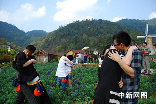 中新網(wǎng)廣州2月14日電(記者 莫非 通訊員 黃翠萍)2月14日是西方情人節(jié),不少戀人不約而同地選擇在這一天“出巢”旅游過節(jié)。14日下午,廣東省內(nèi)最具浪漫氣息的景區(qū)盤龍峽上演了一場(chǎng)花式接吻大賽。