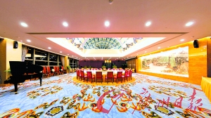 最具特色的則是位于31層頂樓的壹號包房,單個包房面積達700平方米,一張超大的圍臺擺在包房正中央,據說滿座的話可容納60人。這個包房給記者印象最震撼的是天花板可以像天幕一樣開啟。服務員按下電動按鈕,在音樂聲中面積近百平方米的玻璃天花板緩慢向兩側拉開,如同汽車的天窗一樣。孫四元笑稱,幾乎每批壹號包房的客人都會要求開一次天幕,可惜的是廣州空氣質量不佳,難得看到藍天或者滿天星星。