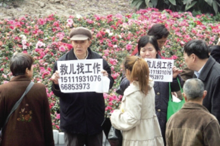“救救我們的兒子,他才27歲!”“我和老伴身體還好,能幫你做飯、洗碗帶孩子!”昨日上午10點多,三峽廣場新世紀門口,一對老人顫顫抖抖,各舉“救兒找工作”的字牌,每逢人群圍觀和有人詢問,便急切地“推銷”自己,表示想找份工作,“我們做不動了,還有孫子可以還賬!”