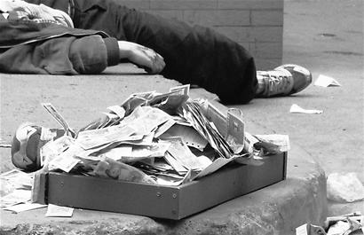 上午10時40分,警方將老人從樓上扔下的錢、名片、光盤等東西一一收拾好帶走,以作進一步調(diào)查。