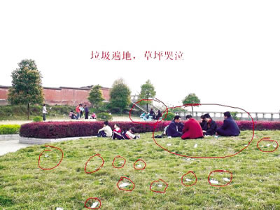 天涯網友“surperdry1”稱,15日那天,春光明媚,他帶上全家人到位于江津艾坪山的烈士陵園里面緬懷先烈。進入陵園卻發現麻將聲聲,雞鳴不已,并配發大量照片以證實自己的話。此帖一出,立即引來網上熱議。烈士陵園怎能受到如此待遇?“surperdry1”還說,盡管草坪上有石碑警示路人“請您尊重安息在陵園內的革命英烈,用文明的言行維護陵園的莊嚴肅穆”,但游人仍然我行我素。