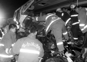 “醫院要求每名大夫和護士組成一個救援小組,看護因車禍入院就診的患者。”方正縣人民醫院醫務科一位姓王的科長告訴記者,當晚19名患者陸續被送進醫院急診病房。10個小時里,醫護人員陪護患者檢查、辦理住院手續,外科30多名醫護人員忙著為傷者清理傷口。