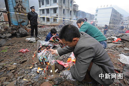 這是大地震后第一個傳統清明節,老縣城廢墟外的封閉鐵絲網清晨七時準默默打開,特意為此地幸存的父老鄉親們開放。綿綿人流回到已成廢墟的千家萬戶和學校機關等地前,焚香燃燭,捧上鮮花。只聽遍地哭聲四起,人人都向遇難親人傾吐衷腸。