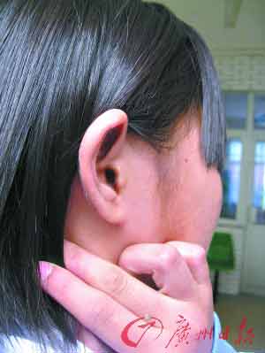 昨天下午,記者在廣州市中西醫結合醫院見到了小晴,她看上去精神有些恍惚,面部微腫,腹部有輕微皮外傷。醫生為她檢查了耳部后,診斷為“耳膜穿孔,嚴重程度中等”。