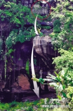 木門(mén)內(nèi)是一閑置的小院子,地面長(zhǎng)有青苔,除了靠懸崖一邊有堵圍墻外,沒(méi)有其他出口。現(xiàn)場(chǎng)沒(méi)有看見(jiàn)兒子,鄧希友踩著靠墻的一堆木材站上圍墻,發(fā)現(xiàn)懸崖下有擦掛的新鮮痕跡。鄧希友心中一涼。