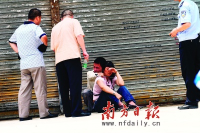 鄺女士在張×述的要求下被迫蹲下來。兩人一起蹲在路邊報亭旁,刀子始終沒有離開鄺女士的脖子。陽光透過樹葉,照射出張×述惶恐不安的表情。