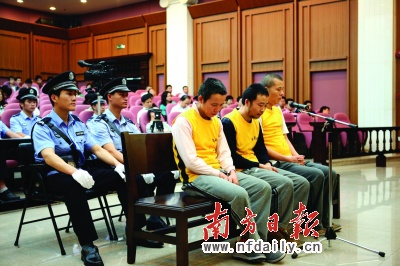 昨日上午,備受關注的廣州“瘦肉精”案在白云區法院一審公開開庭審理(如圖,通訊員供圖)。據白云區檢察院指控,鄧云高、劉訓堯、肖學慶3名被告人被控涉嫌銷售有毒、有害食品罪。