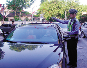 前天傍晚6點多,南京交警五大隊民警喻何鑫正在北京西路西康路路口值勤,這時電臺突然響了,在云南路執勤的同事告訴他,剛剛有一輛黑色轎車駛過,從天窗中伸出一根桿子,上面還掛著一個塑料袋。同事讓他攔下檢查一下,于是小喻就在路口等待。很快,一輛黑色轎車駛來,小喻定睛一看,就是同事說的那輛車。再仔細辨認,小喻嚇了一跳,原來這伸出天窗的居然是一根掛水桿,上面還有輸液袋。難道是車主一邊掛水一邊開車,小喻趕緊上前將該車攔下,靠邊停車后,他才發現是坐在副駕上的女子在掛水。“居然能這樣掛水,真是神奇”,“看來天窗也有好處啊,桿子伸出來方便。”路過市民看到這一“奇景”后紛紛駐足議論。
