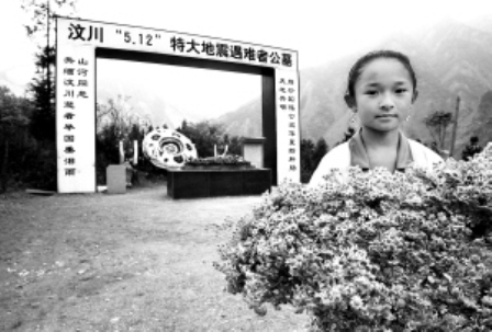 去年的災難突如其來,400多名師生只有四分之一幸存,映秀小學被碾碎的校園里唯有一根旗桿矗立。今天,五星紅旗依舊飄揚,天真的臉上依舊有微笑。