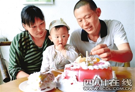 “祝你生日快樂……”昨日下午,成都龍泉西河鎮(zhèn)一農(nóng)家小院里,在去年地震當(dāng)天出生的小男孩何震生迎來1歲生日,左鄰右舍紛紛前來道賀。小震生“咯咯”地笑著,一刻也閑不住,用胖嘟嘟的小手到處亂抓。