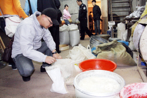 經(jīng)過(guò)一天的檢查,造假窩點(diǎn)的負(fù)責(zé)人一直沒(méi)有露面。稽查人員將全部藥品原料、成品裝袋,準(zhǔn)備沒(méi)收。幾名工人不斷地阻攔稽查人員,理由是“這些藥還沒(méi)干燥好,裝走了就不能賣了。”