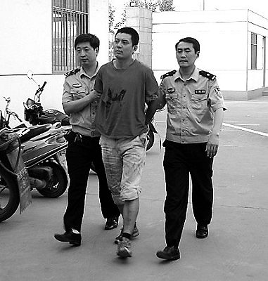 5月8日,民警對上水村附近十幾家超市展開了秘密排查。中午12時40分左右,民警排查到上水村一超市門口時,發現一名長相與魏加裴相似的男青年。當時,該青年也發現了民警在觀察自己,頓時一臉緊張,騎上自行車就往超市南邊走,而且邊騎車邊不停地回頭張望。絕不能放過任何一個可疑人員!民警們迅速掉轉車頭追趕?毂蛔飞蠒r,該青年在一個小賣部門前停下車,裝作買東西,同時偷偷地用眼睛的余光觀察民警。民警迅速下車盤問。該青年自稱身上沒有身份證,只有暫住證。雖然暫住證上表明他是棗莊市嶧城區底閣鎮人,但細心的民警發現,該青年的口音分明就是蒼山口音。民警認定,該青年有著極大的疑點,迅速將其控制。