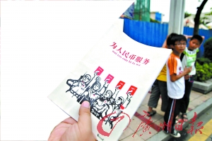 “六一”節即將來臨,在順德大良東區居住的梁女士,準備為自己讀三年級的兒子買一套全新的文具,翻開兒子的書包,卻意外發現里面有幾本“歪語錄”筆記本,上面大大個字寫著“為人民幣服務”、“提高警惕,保衛老婆”(見上圖)。