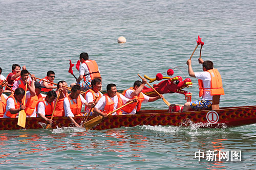 中新網和碩5月28日電(記者 汪金生)中國最大內陸淡水湖博斯騰湖今天被喧鬧的鑼鼓聲和歡呼聲感染,當地以一場大型龍舟賽慶祝傳統節日端午節。