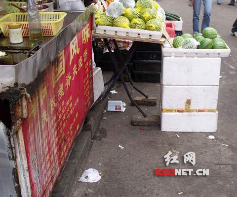記者再去采訪時,發現兩家店面的中間地帶,仍然擺放兩壘西瓜:一壘西瓜擺放在放桌上;緊挨著還有一壘白色泡沫盒疊起來的西瓜,仍有逼近路中央的趨勢。記者問到被砸壞的工具和被砸掉的雞蛋、果醬、辣椒等原料的賠償問題時,包父嘆了口氣說:“沒有賠償,大家鄰居一場,這些也就算了,但是心里還是有個小要求,希望水果店店主能把隔在中間的西瓜挪開些,方便大家走路。”