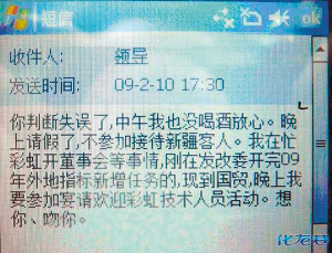 帖中寫道:樓主數(shù)日前拾得手機一部,經(jīng)查看后發(fā)現(xiàn),機主為江蘇某市經(jīng)濟開發(fā)區(qū)一位王姓女局長。該女局長同時與多位男士長期保持著曖昧關(guān)系。隨帖還貼出了多張手機中的短信翻拍圖片,清晰可見其曖昧文字內(nèi)容,同時也可發(fā)現(xiàn)其發(fā)短信的時間跨越了2006~2009年。