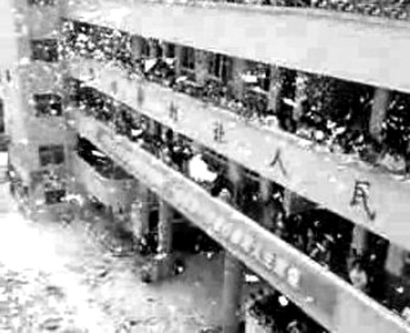 情景 百名學生教學樓上撕書