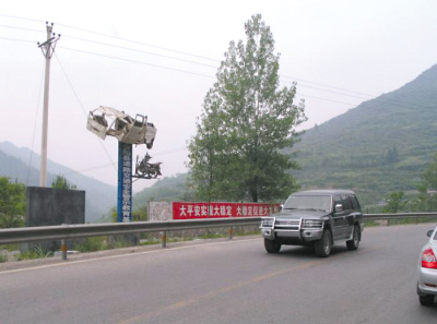 在國道一旁,一部只剩癟形外殼的汽車被高懸在近20米的半空中,令過往此地的司機無不瞠目結舌。近日,被稱之為“最牛交通安全警示教育基地”的照片出現在大渝網,其極富創意的宣傳方式讓眾多網友拍手稱贊。