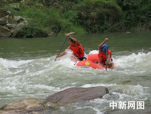 中新網(wǎng)成都7月11日電(張琳琳)7月11日,2009中國(guó)·都江堰(虹口)國(guó)際漂流節(jié)在都江堰市虹口景區(qū)拉開(kāi)序幕。漂流節(jié)的的重頭戲是“自然水域漂流大賽”,來(lái)自美國(guó)、英國(guó)、澳大利亞、捷克、荷蘭的5支外國(guó)隊(duì)伍及遼寧、貴州、北京等7個(gè)省市的11支隊(duì)伍,總計(jì)45名運(yùn)動(dòng)員參加了比賽。比賽的項(xiàng)目為雙人橡皮艇長(zhǎng)距離漂流,最終來(lái)自英國(guó)、捷克的代表隊(duì)分別獲得冠軍、季軍,中國(guó)貴州的2名業(yè)余選手獲得亞軍。
