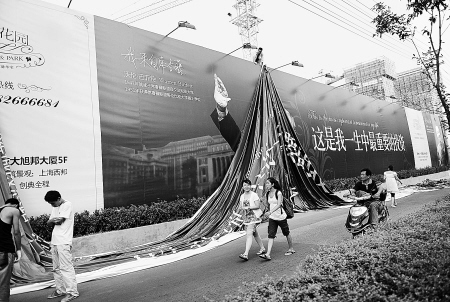 昨晚7時(shí)許,記者再次來到該樓盤外,看到很多工人正在做準(zhǔn)備,他們要將一幅新制作的廣告覆蓋在上面。新廣告上傳達(dá)的內(nèi)容和相關(guān)字樣沒什么變化,只是將名人頭像換成了“股神說”“科學(xué)家說”等字樣。幾位工作人員說,聽說這幾幅廣告涉嫌侵權(quán),公司才緊急將其換掉的。 (記者郭欣 實(shí)習(xí)生胡歲歲)