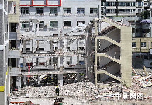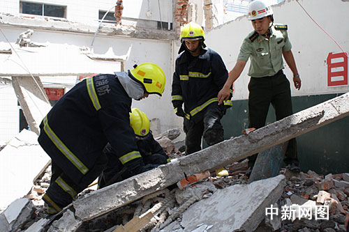 中新網溫州7月20日(記者李飛云 江耘)昨天上午8點32分,浙江平陽縣昆陽鎮第一小學內拆遷舊的大樓導致部分房屋坍塌,造成在樓內作業的6名施工人員一死五傷。