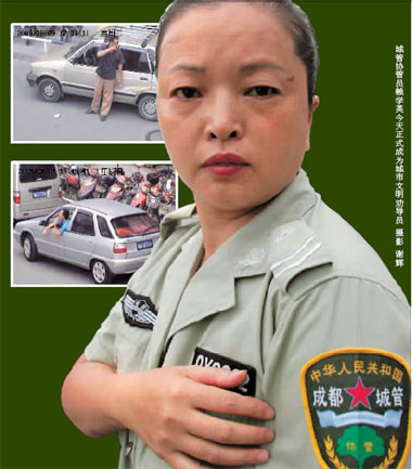 今日上崗的錦江區(qū)、青羊區(qū)、金牛區(qū)和武侯區(qū)的四支女性“文明勸導(dǎo)隊(duì)”包括了200名“媽媽城管”,她們的年齡在50歲左右。據(jù)介紹,首批“媽媽城管”在青羊區(qū)共有50名,年齡最大的53歲。其中部分人員來(lái)自社區(qū)的推薦,通過(guò)面試后,她們還必須接受城管局的培訓(xùn),熟悉相關(guān)的城管法規(guī)。