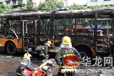15:40分,華龍網(wǎng)記者趕到事發(fā)現(xiàn)場(chǎng),看到車輛已經(jīng)被燒的面目全非。警方已經(jīng)在現(xiàn)場(chǎng)拉起警戒線,開(kāi)始調(diào)查和清理現(xiàn)場(chǎng)。據(jù)目擊者稱,起火點(diǎn)是車子的中后部,短短3、4分鐘時(shí)間,公交車玻璃發(fā)生爆炸,大火就將整輛公交車包圍。事發(fā)后,司機(jī)打開(kāi)車門,乘客逃出。據(jù)重慶商報(bào)報(bào)道,有3名乘客受傷。