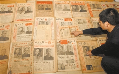 “國慶方面各類報(bào)紙就有2噸,多從要搬家的機(jī)關(guān)事業(yè)單位,或者廢品收購站購來的。”楊翔飛說,收藏國慶報(bào)道的報(bào)紙,他花了13萬元左右。