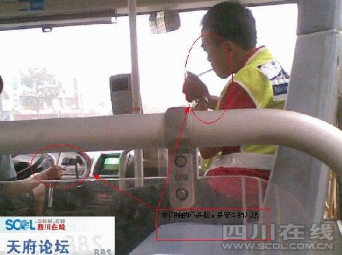 7日,網友“飛過海里”在天府論壇發帖稱,當日早上,他乘坐車牌號為川A90107的72路公交車去上班,剛上車,就發現駕駛員和安全員一邊聊天,一邊開車。在他快下車時,司機居然摸出兩支煙,自己拿一支,給公交安全員一支,并隨后點燃了煙。此時車上還有乘客,兩人就抽起了煙。