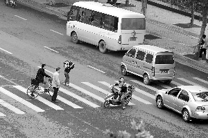 記者在走訪調查中發現,鄭州市區的每條斑馬線都處于人車混行狀態,大部分車輛在斑馬線前均未停車避讓行人。行人橫過馬路時,機動車會在距離行人較遠的地方開始鳴笛,示意行人給他讓行,有的還會加速行駛想搶在行人之前通過。面對飛馳而來的車輛,穿行斑馬線的行人只能是瞻前顧后,左躲右閃。