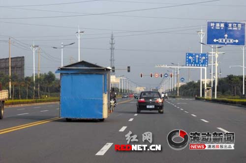 在帖文中配發(fā)了一組共5張照片,照片顯示,該房車正在機(jī)動(dòng)車的超車道上行駛,從后面看去,像是建筑工地上剛搭建好的一座臨時(shí)用房,藍(lán)顏色的房車主體格外顯眼,一旁的行車道上還有一輛黑色的桑塔那3000型轎車幾乎在并駕齊驅(qū)。