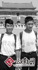 用了近半年時間,行程達萬余里,從云南臨滄市云縣徒步啟程,途經廣西、湖南等7省(區),最終趕在新中國60歲生日前順利到達首都北京。從今年3月開始,云縣的楊世和及兒子楊澤泳,帶著家鄉人對祖國的祝福,以“徒步”的獨特方式喜迎新中國成立60周年。