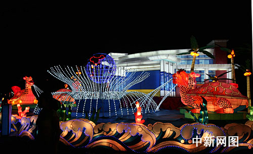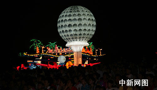 中新網海口10月1日電(付美斌)1日晚上8 時,海南海口市萬綠園人潮涌動,燈火輝煌、流光溢彩,海南省慶祝新中國成立60周年大型主題彩燈展今晚正式亮燈開展。整個燈展設七大板塊共60個燈組,展為期一個月。