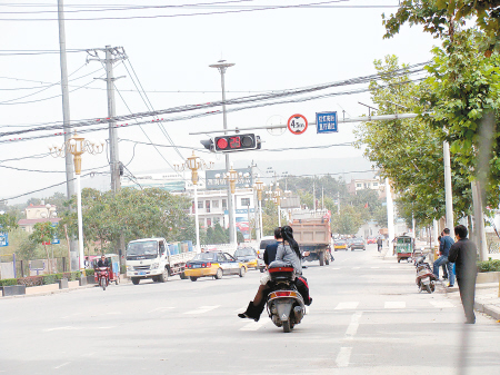 據悉,今年6月份,當地媒體批評交警設立的這個紅綠燈不合理,使得東去的車輛經常人為擁堵,出租車司機建議拆除這個紅綠燈,改設提示牌或者交警執勤,隨后不久交警就在這個紅綠燈旁邊安裝上“紅燈亮時 直行通過”的指示牌了事。記者電話采訪了渭南臨渭交警大隊交管科楊科長,他說設立“紅燈亮時 直行通過”的牌子是有依據的,記者問依據是什么,他讓記者次日去他辦公室看。(文/圖 記者 石俊榮)