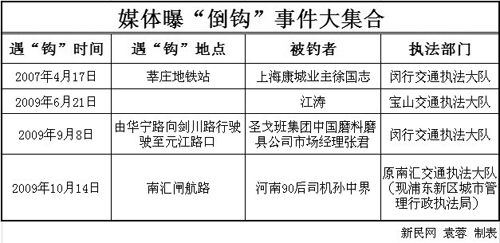 而上海當地一位老司機則透露,“倒鉤”執法在上海其實很普遍,“因為真的黑車很難抓,所以就找個‘釣鉤’來釣你上鉤,讓你做黑車、罰點款。整個上海市至少有上千個‘釣鉤’。”