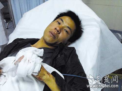 醫(yī)生經(jīng)過了兩個多小時的手術,但覃櫞左手的小指還是沒接上。前日下午,25歲的洪湖小伙子覃櫞在武漢白沙洲海鮮大市場里剁掉小指,他說自己這樣做是為了證明清白。
