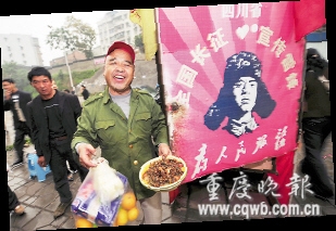 前日,劉光建離渝前往四川,人稱“活雷鋒”的他,發誓要走遍全國,用擦鞋招徒來宣傳雷鋒精神!霸谥貞c近兩月,發現重慶人個個是熱心人!眲⒐饨ǜ嬖V記者。