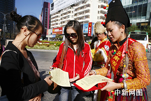 在今日舉行的宣傳活動上,記者見到了這二十六位“消防形象大使”。他們身著傳統民族服裝,向市民發放消防安全知識手冊,并現場為市民講解消防知識。據稱,他們回到自己家鄉后,還將繼續當地起“消防形象大使”的職責,向云南少數民族地區,特別是邊遠的地區宣傳消防知識。