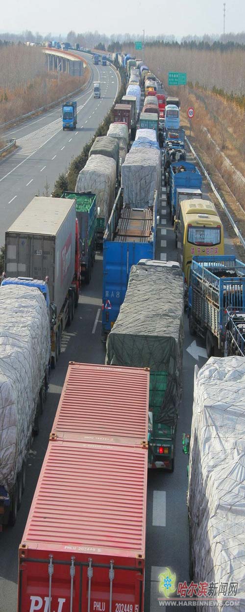 據路政工作人員介紹,這次嚴重堵車主要是天氣原因,從8日夜里到9日吉林省境內共發生交通事故近20起。